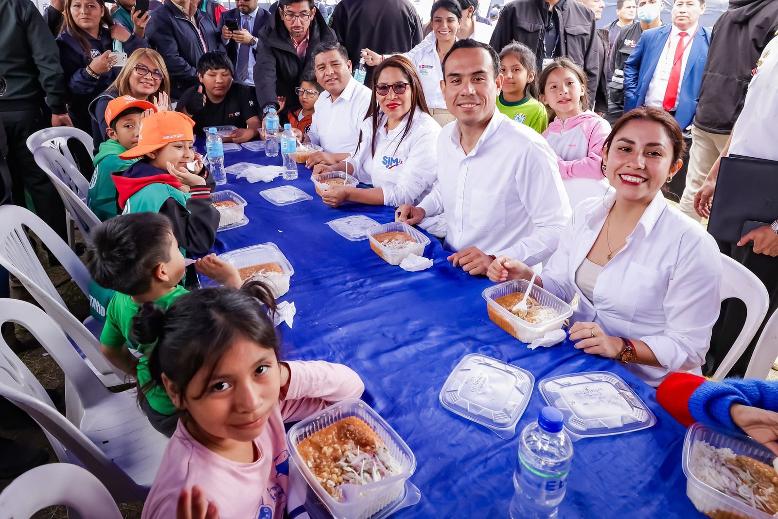 La ministra de Desarrollo e Inclusión Social, Lesly Shica, acompañada del presidente de la república, José Jerí, visitó la zona de Pamplona Alta, en San Juan de Miraflores, donde ocurrió el incendio el último sábado, para entregar almuerzos a las familias damnificadas y compartir los alimentos con los niños afectados por la emergencia.