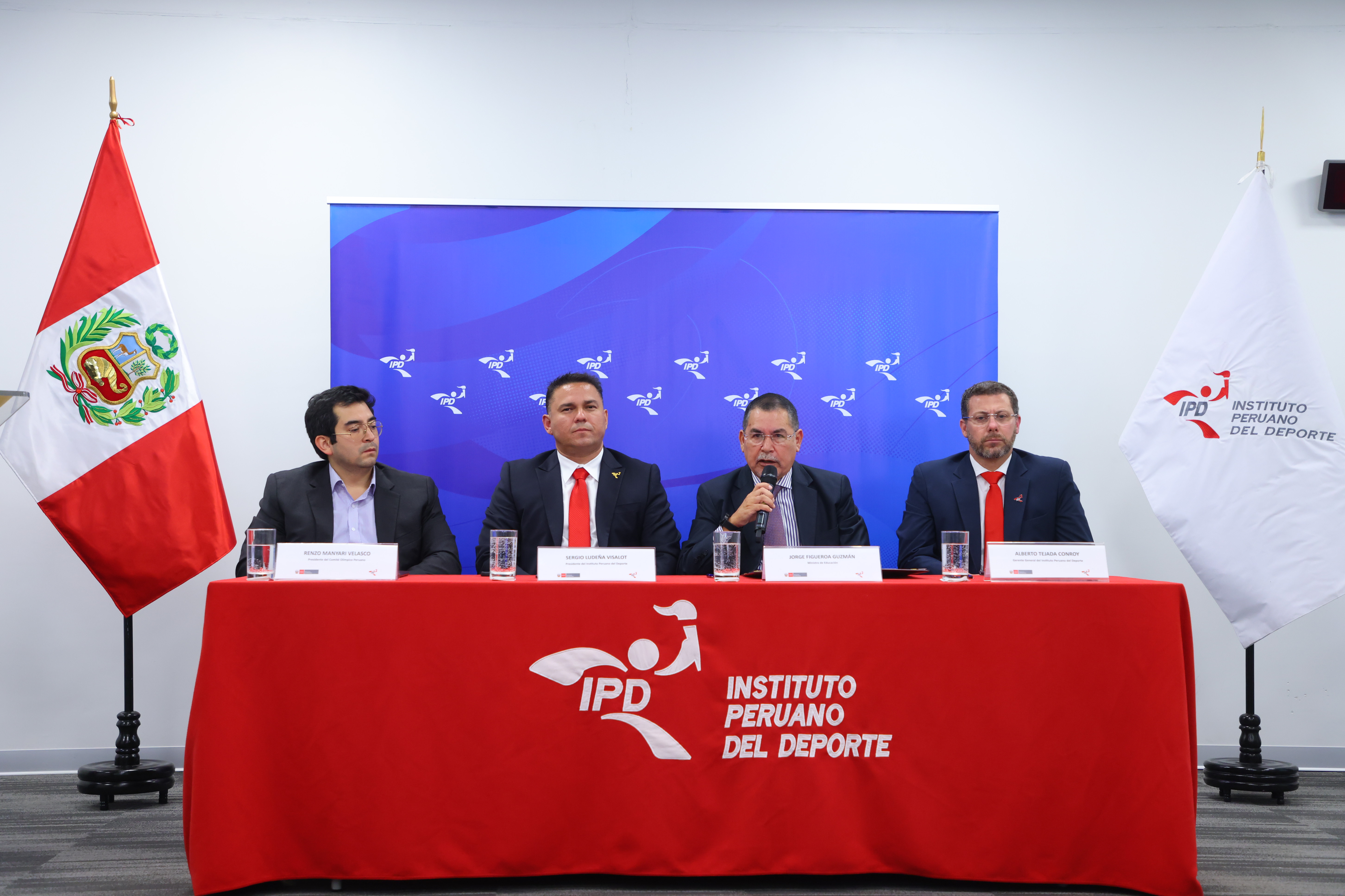 El ministro de Educación, Jorge Figueroa Guzmán, presentó al nuevo jefe del Instituto Peruano del Deporte (IPD), Sergio Ludeña, quien, a partir de la fecha, tendrá el encargo de fortalecer el deporte en todas sus disciplinas y de liderar la organización de los Juegos Bolivarianos, que se celebrarán en la región de Ayacucho.
