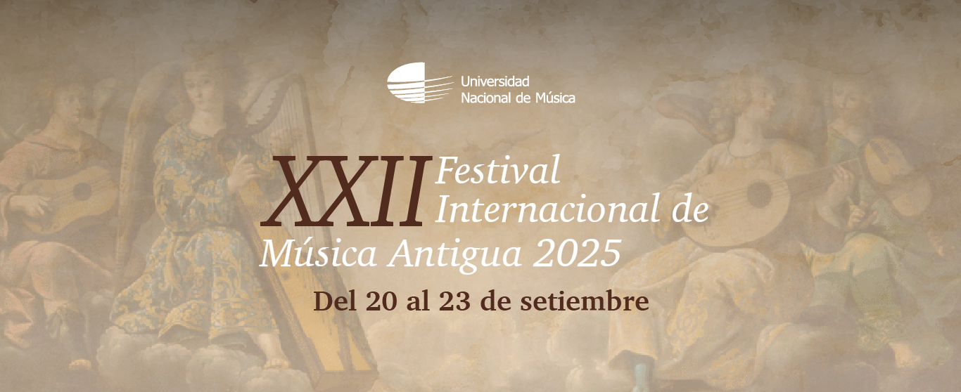 La Universidad Nacional de Música (UNM) organiza el XXII Festival Internacional de Música Antigua, que se realizará del sábado 20 al martes 23 de setiembre teniendo como locación principal a la UNM (Jr. Carabaya 421, Lima). Incluirá clases maestras, conferencias magistrales, conciertos y recitales de ingreso libre, a cargo de maestros de destacada trayectoria internacional, para la comunidad de la UNM y público en general.