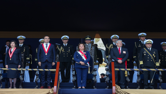 La presidenta Dina Ercilia Boluarte Zegarra rindió homenaje al almirante Miguel Grau Seminario y destacó el papel de la Marina de Guerra del Perú en la lucha contra los remanentes del terrorismo y el narcotráfico.