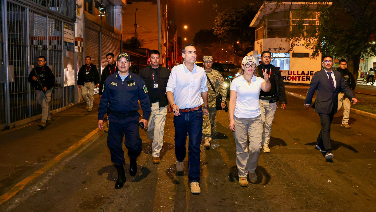 En Surquillo, el mandatario recorrió las instalaciones de la comisaría ubicada en la avenida San Diego, que sufrió daños en su infraestructura tras la caída del techo. Junto con la alcaldesa Cintia Loayza Álvarez, verificó las condiciones del local e inspeccionó un terreno estatal que podría destinarse a la reubicación de la sede policial y a la construcción de un complejo integral de seguridad ciudadana.