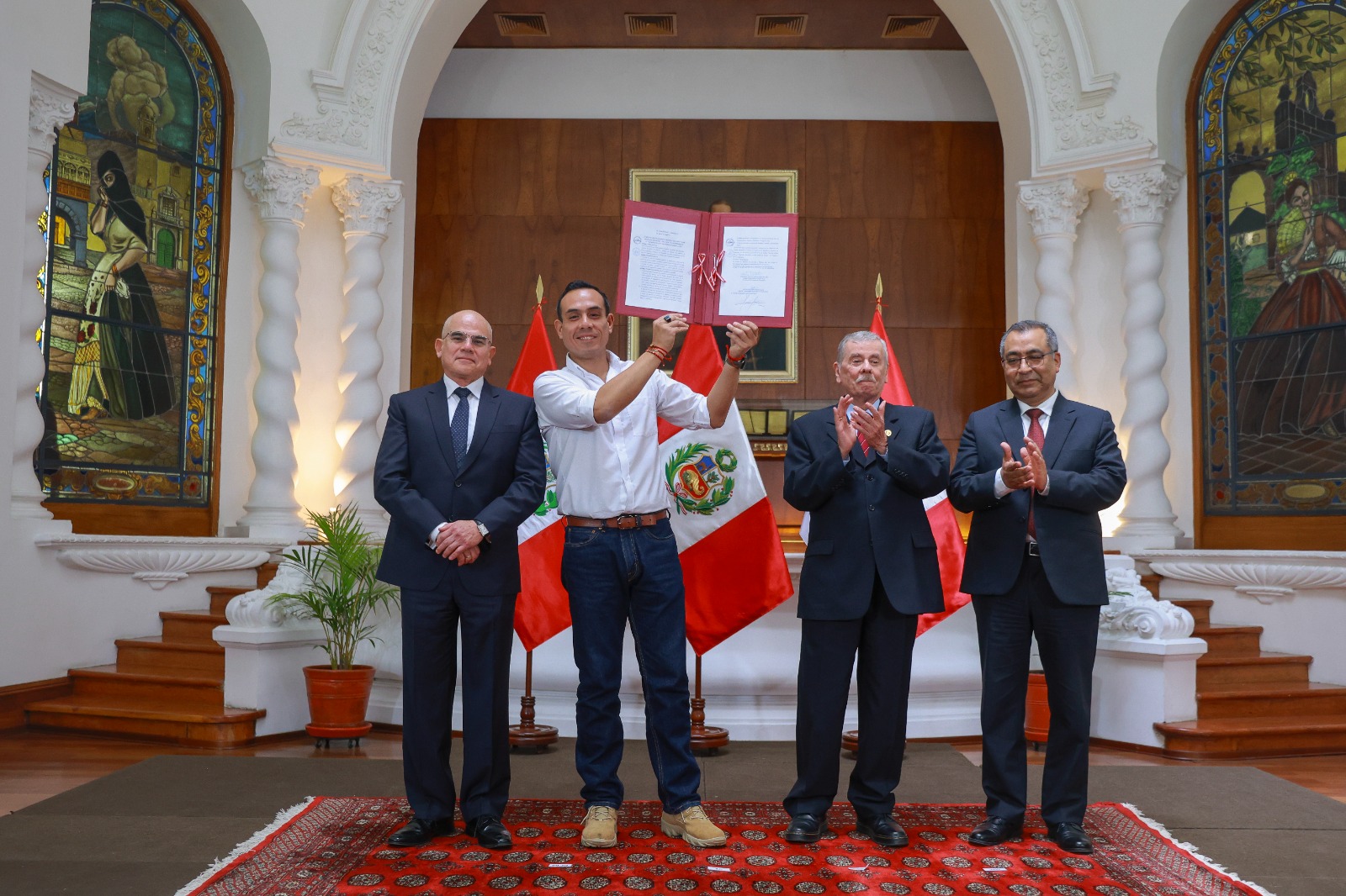 La promulgación de la ley se llevó a cabo en Palacio de Gobierno junto al jefe del Gabinete Ministerial, Ernesto Álvarez; el ministro de Transportes y Comunicaciones, Aldo Prieto, y el titular del Congreso, Fernando Rospigliosi.